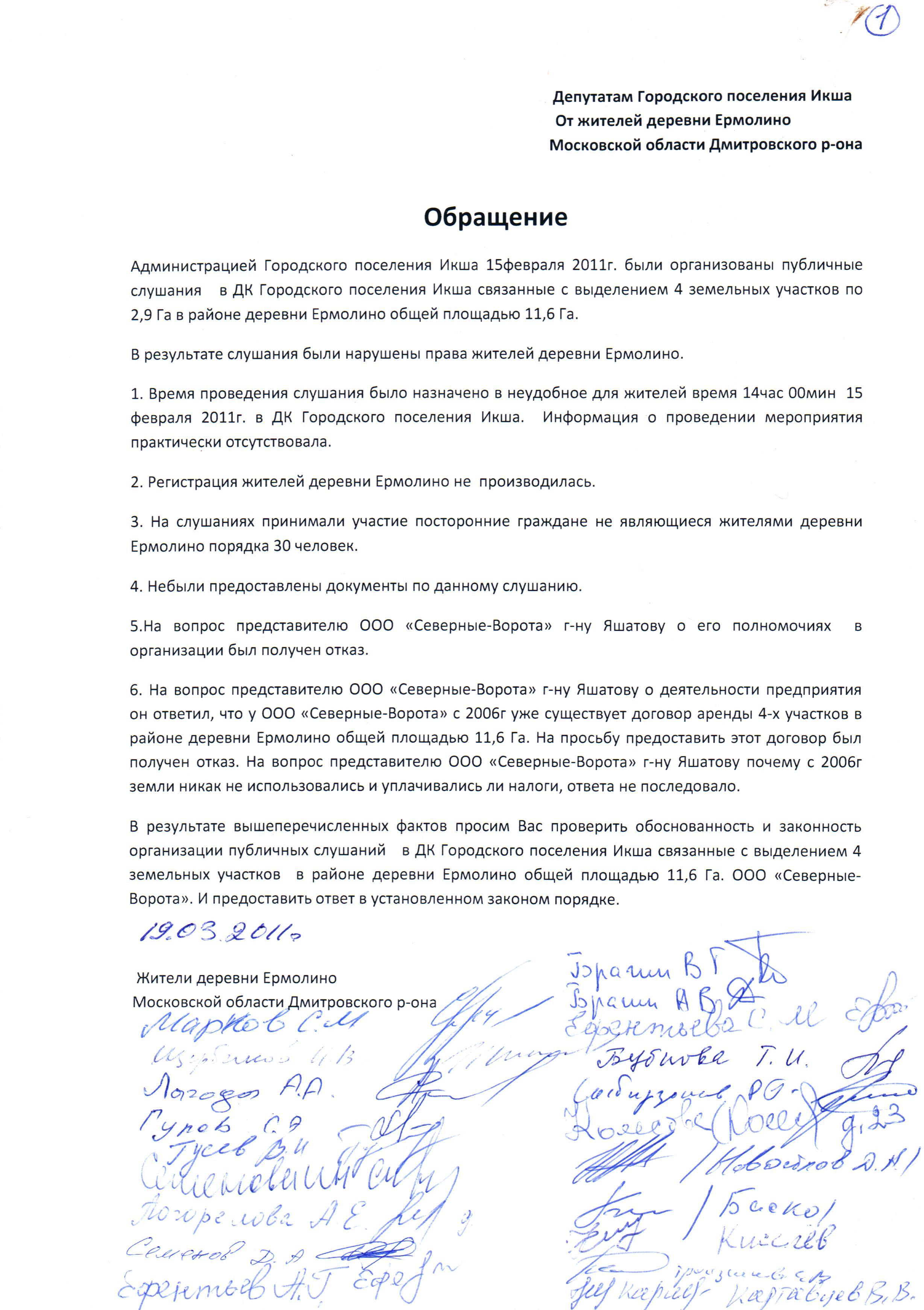 депутат Новиков А.П. Опубликовано 7 августа, 2013 Опубликовано 7 августа, 2013 Публичное слушание является решающим инструментом для местного населения, чтобы выразить свое мнение и повлиять на решение комиссии, которая состоит только из чиновников администрации.Объявления о проведении публичных слушаний печатаются только в газете – Дмитровский вестник, хотя информация должна быть шире. Пишут мелким шрифтом с неясным текстом, проведения публичных слушаний назначают в неудобное для населения время, в будни дни, среди рабочего дня.Из этого видно, администрация заинтересована в том, чтобы как можно меньше присутствовало местного населения на публичных слушаниях. Существует практика привлекать посторонних людей для голосования, что является не законным. В результате публичное слушание проходят не в пользу местного населения.На публичных слушаниях переводят незаконно земли сельхоз угодий в иное пользование (промышленную зону), которая находится вплотную к населенному пункту, в угоду крупных предпринимателей (бизнесменов), которые здесь не живут, и их прибылей.Вырубают леса под видом уничтожения короеда. Короед был всегда и будет, несмотря на это, леса стоят вековые.После вырубки леса земельные участки раздаются «нужным людям», забывая про льготников. Проигрывают заинтересованные жители деревень, поселков. Становится жить не комфортно. Логистика, склады, производство, новые дороги, увеличение потока грузового транспорта (шум и газ). Нарушается экология.Да, предприятия нужны, это рабочие места, но не за счет здоровья местных жителей.При участии на публичных слушаниях жителей, общественности, депутатов городских поселений, администрации всегда можно найти компромиссное решение для того или иного вопроса. Благополучие населения отраженно в ФЗ № 131 "Об общих принципах организации местного самоуправления в Российской Федерации", в лесном земельном законодательстве, в уставе городского поселения.Все это игнорируется администрацией. В результате, закон не исполняется в полной мере. Складывается такое впечатление, что администрация получает зарплату в другом месте. В подтверждение своих слов публикую некоторые документы: