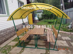 prof Опубликовано 24 июня, 2014 Опубликовано 24 июня, 2014 "Маруся" - это сборно-разборная садовая беседка арочного типа с покрытием из сотового поликарбоната. Наша многоцелевая беседка предназначена для комфортного отдыха на дачном участке. Беседка усиленная, изготовлена из стальной профильной трубы 25х25х2, имеет сборно-разборную конструкцию на болтах. Все торцы труб закрыты пластиковыми заглушками во избежание порчи одежды. Крыша имеет прочный каркас в виде обрешетки из профильных труб, на который ложиться поликарбонат. Поэтому нет необходимости снимать поликарбонат на зиму, как это требуют большинство аналогичных изделий других производителей. Цвет по желанию заказчика. Цена усиленной беседки "Маруся" с доставкой и сборкой в Икше - 14.900 руб. т. 8 926 754 53 53 www.profnaves.ru